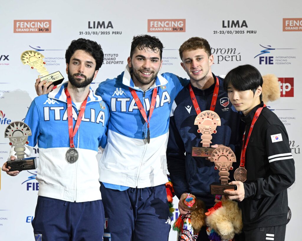 Il fioretto italiano brilla al Grand Prix di Lima, con un poker di medaglie che conferma il dominio azzurro nel circuito internazionale. Nella competizione maschile, Filippo Macchi conquista il suo primo oro in Coppa del Mondo, superando in finale il connazionale Guillaume Bianchi, che si aggiudica l’argento. Successi anche tra le donne, con Anna Cristino seconda e Martina Favaretto terza, in un weekend indimenticabile per la scherma italiana guidata dal CT Simone Vanni.